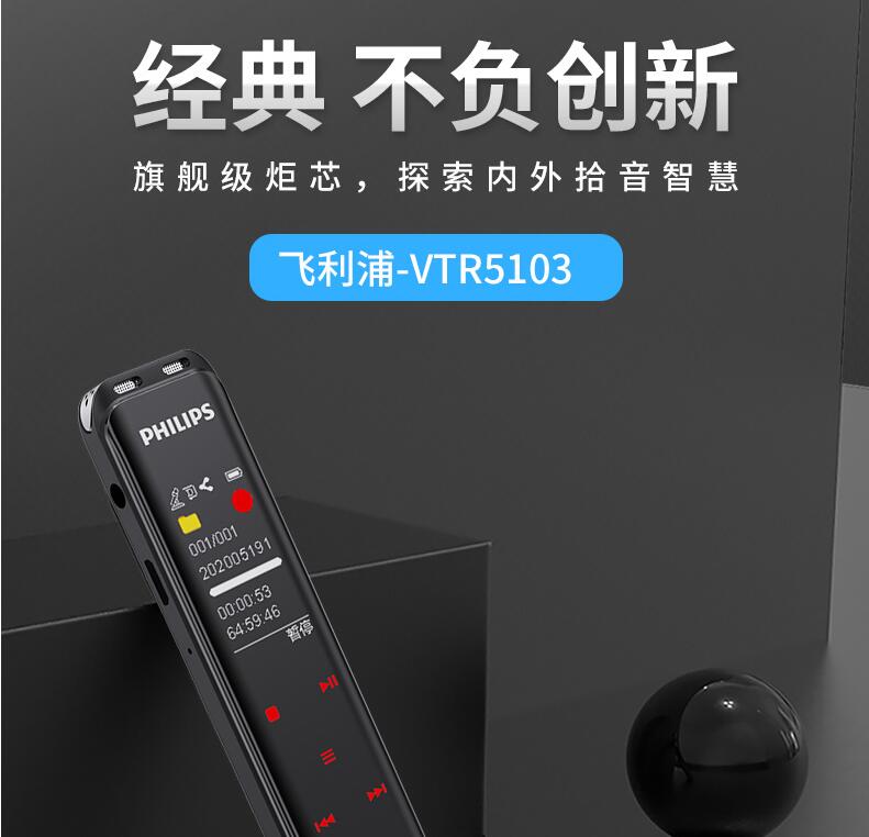 飛利浦VTR5103 Ai智能錄音筆轉(zhuǎn)文字翻譯專業(yè)高清降噪小型超長待機(jī)